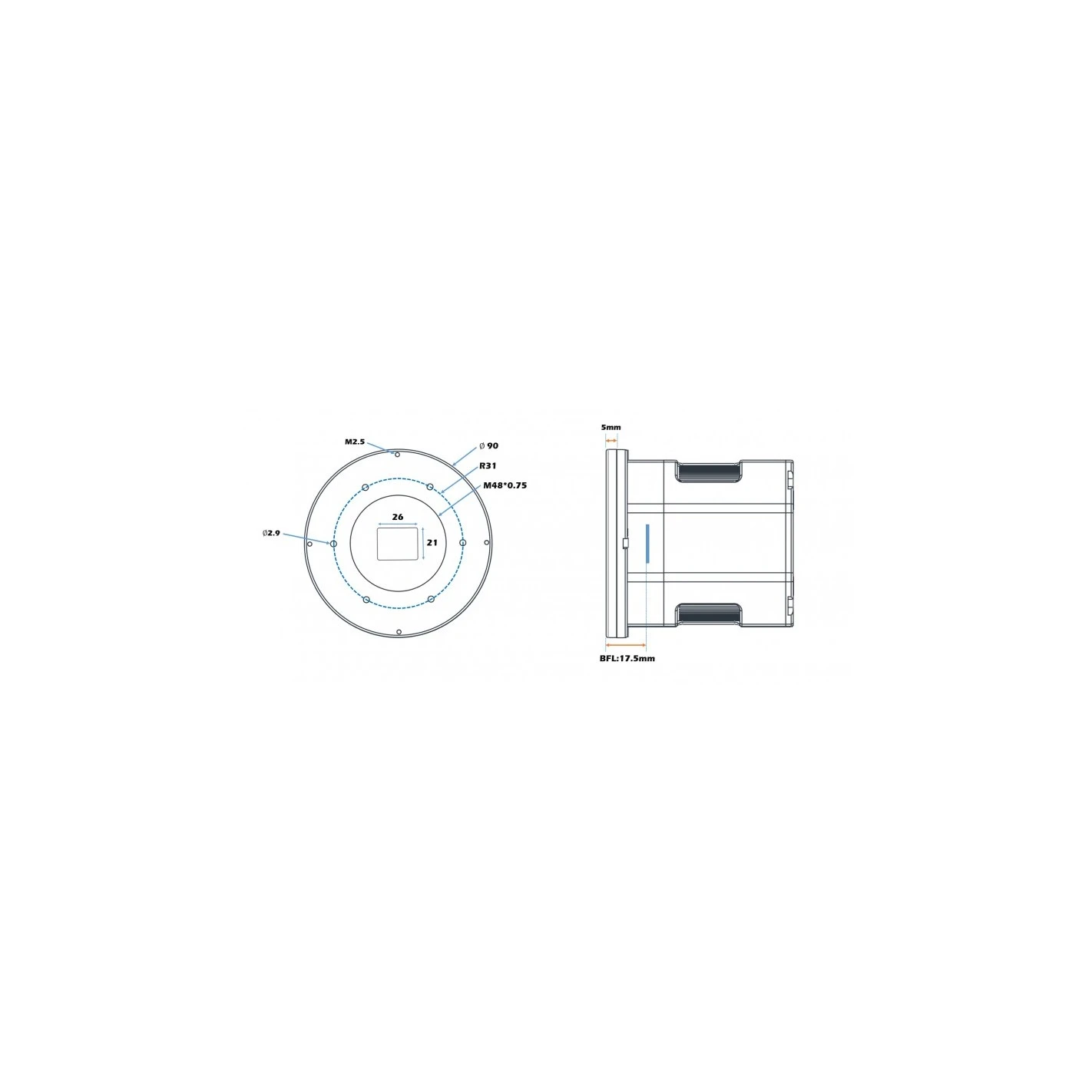 Adopta el sensor en color Sony IMX492 de formato 4/3″ El tamaño de píxel de 2.315 um permite una profundidad de pozo de 18,6 Ke con un total de 48 MP (la resolución es de 8288*5648) y la diagonal es de 23,2 mm.
