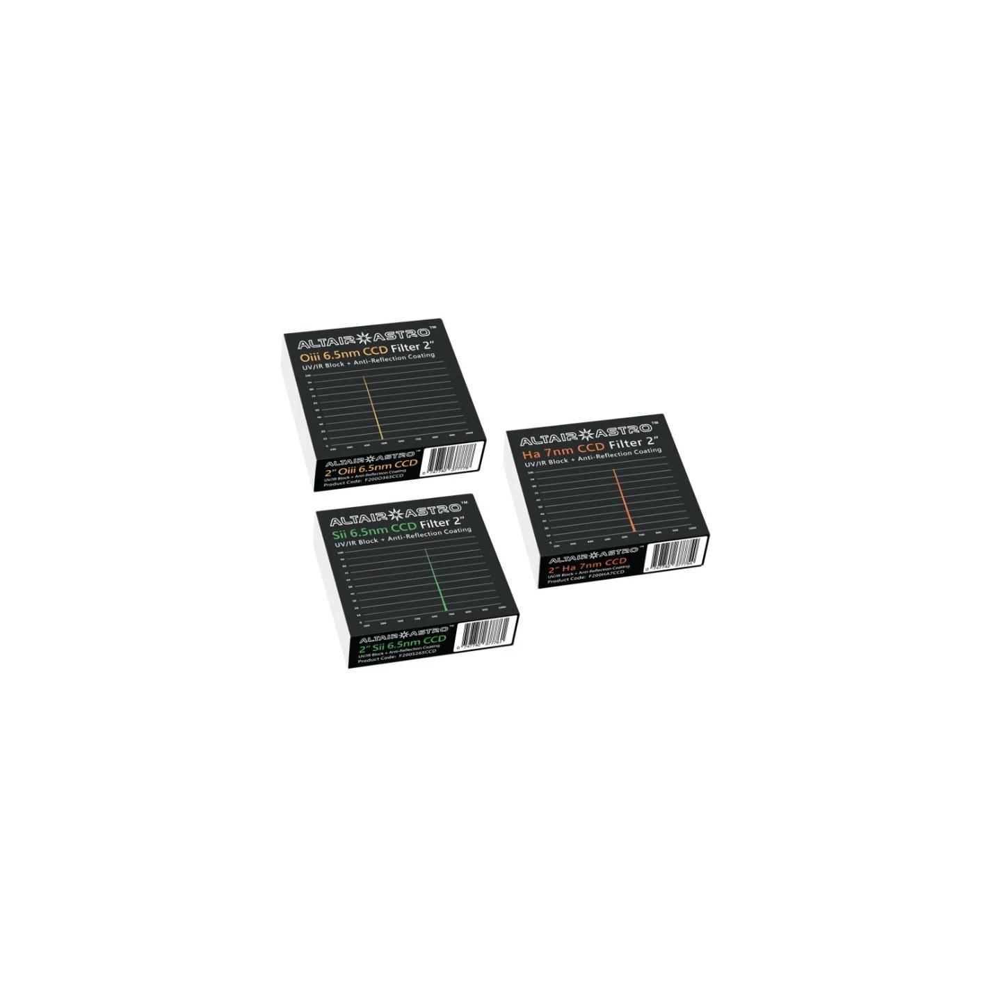 El juego de filtros de banda estrecha Altair Astro Premium está diseñado para imágenes astronómicas de nebulosas con cámaras Mono CCD o CMOS, bloqueando la contaminación lumínica al cortar las longitudes de onda de contaminación lumínica. Los filtros bloquean los rayos UV e IR y tienen un revestimiento AR antirreflejos.