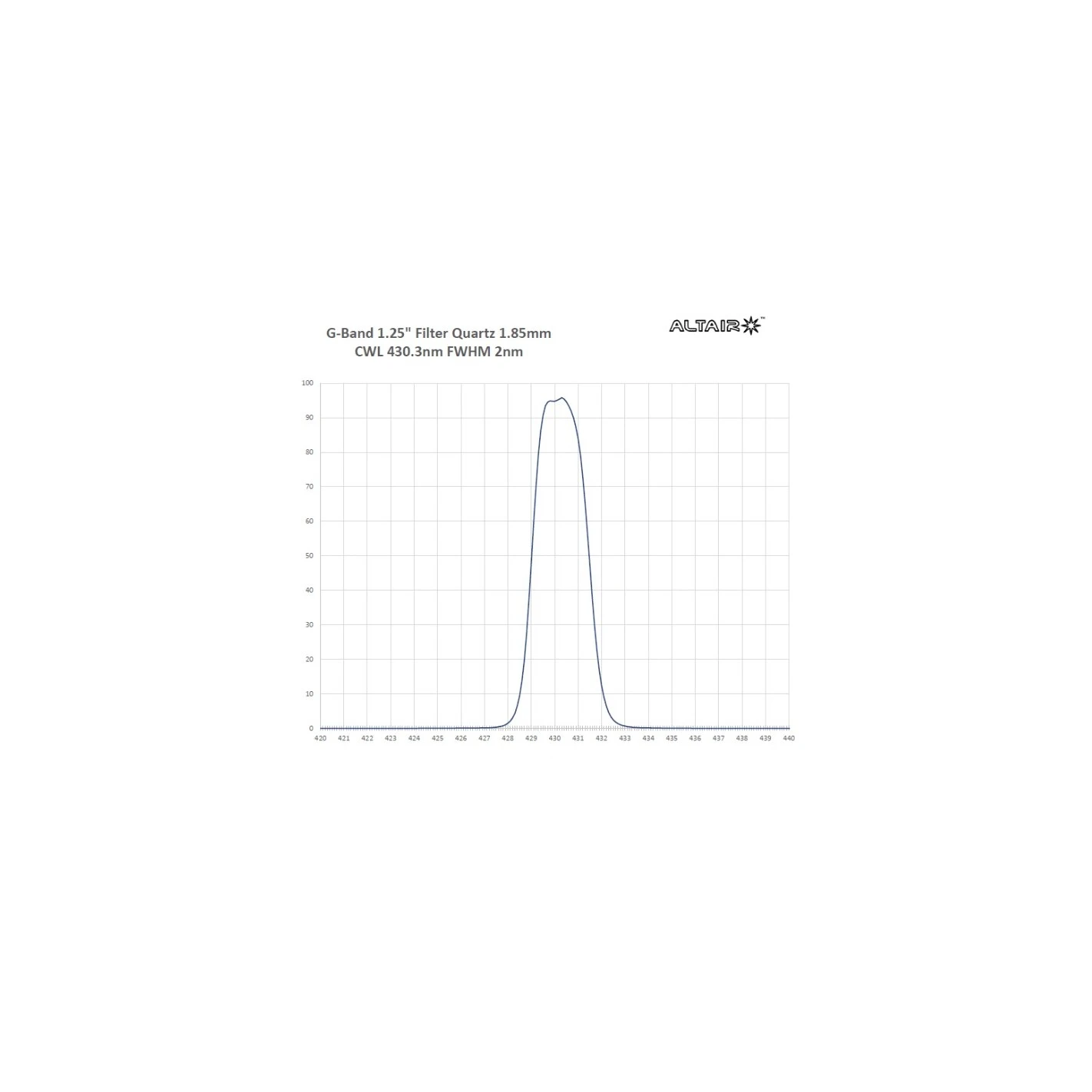 - CWL 430,3nm @ 96% de transmisión, tolerancia 1%.