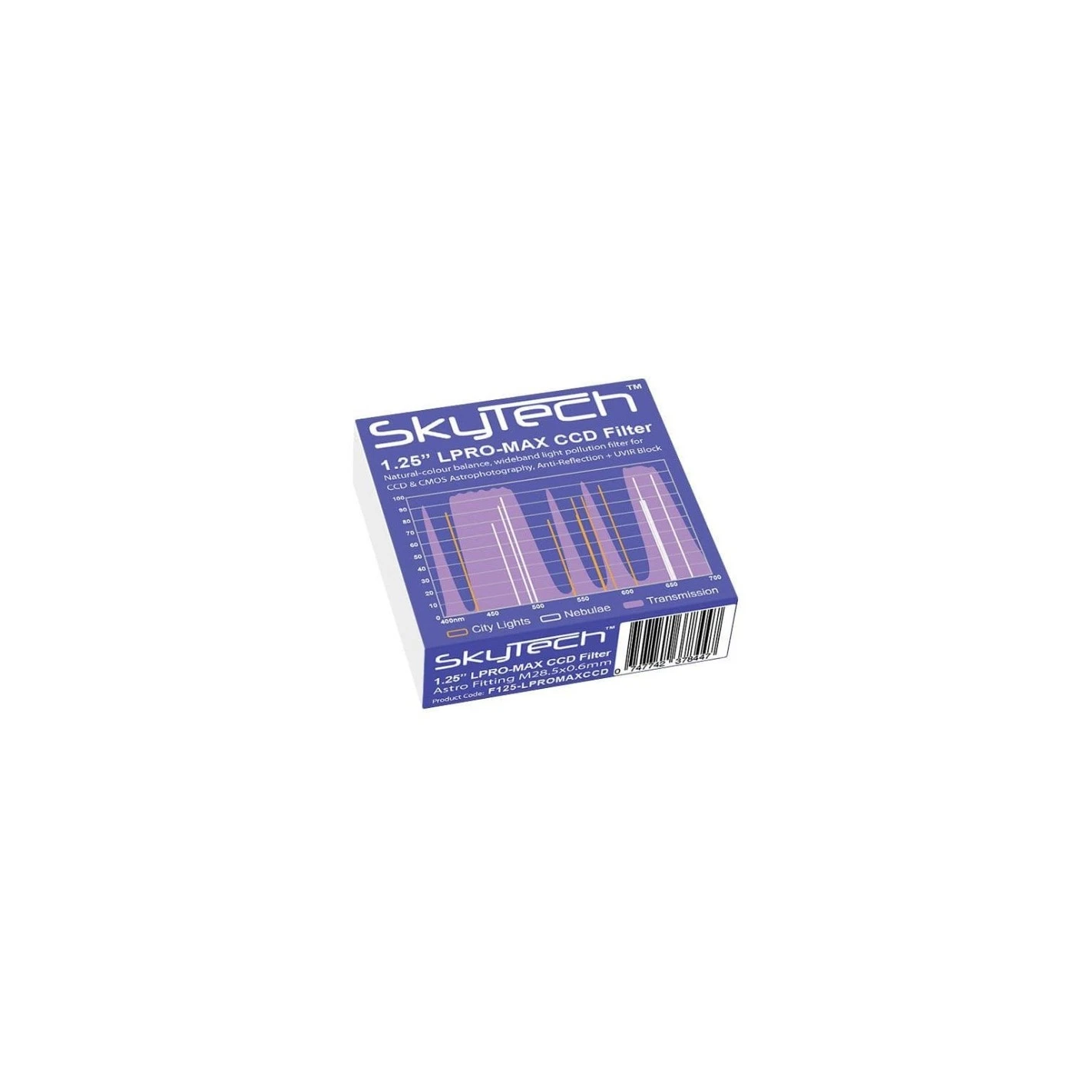 Los filtros SkyTech LPRO-MAX son adecuados para cámaras CMOS y CCD en color y monocromáticas. El LPRO-MAX bloquea la luz ultravioleta e infrarroja para obtener estrellas más nítidas. Las cámaras monocromáticas también se pueden utilizar con el LPRO-MAX para capturar el canal de luminosidad en imágenes LRGB en áreas con contaminación lumínica. El filtro LPRO-MAX de 1,25″ es compatible con toda la gama GPCAM de Altair y las cámaras CMOS de la serie Hypercam 183 (el LPRO-MAX se atornilla al revólver frontal de 1,25″ de la cámara o al portafiltros magnético de Altair con deslizador de 1,25″ opcional). El adaptador de lentes GPCAM / Hypercam DSLR también es compatible: el filtro LPRO-MAX de 1,25″ encaja dentro de la carcasa detrás de la lente, protegido del polvo.