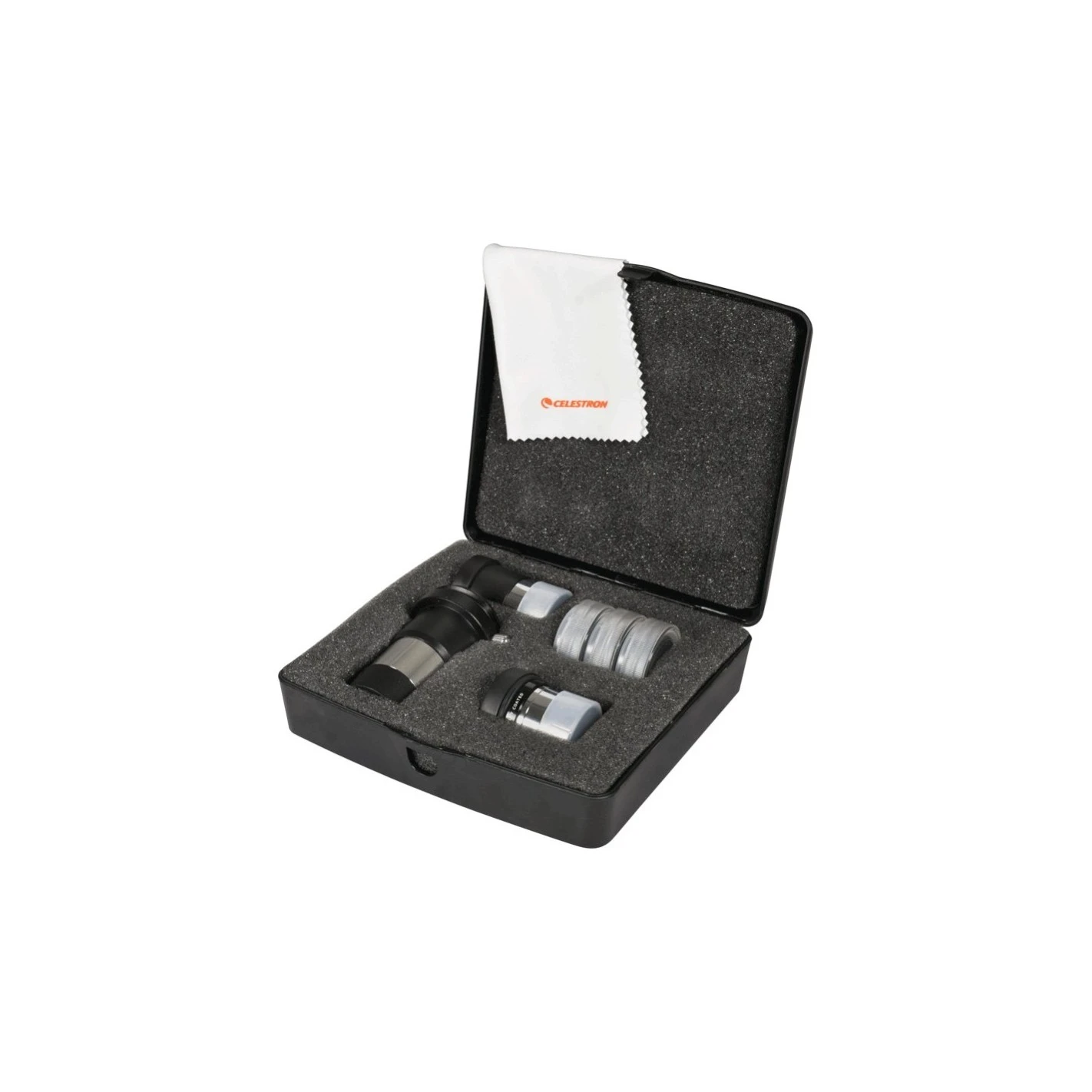 El kit de accesorios AstroMaster está diseñado para aumentar la funcionalidad del telescopio. Este kit puede ser utilizado con telescopios de otras marcas que permitan el acople de oculares y filtros de 31,8mm Ø.