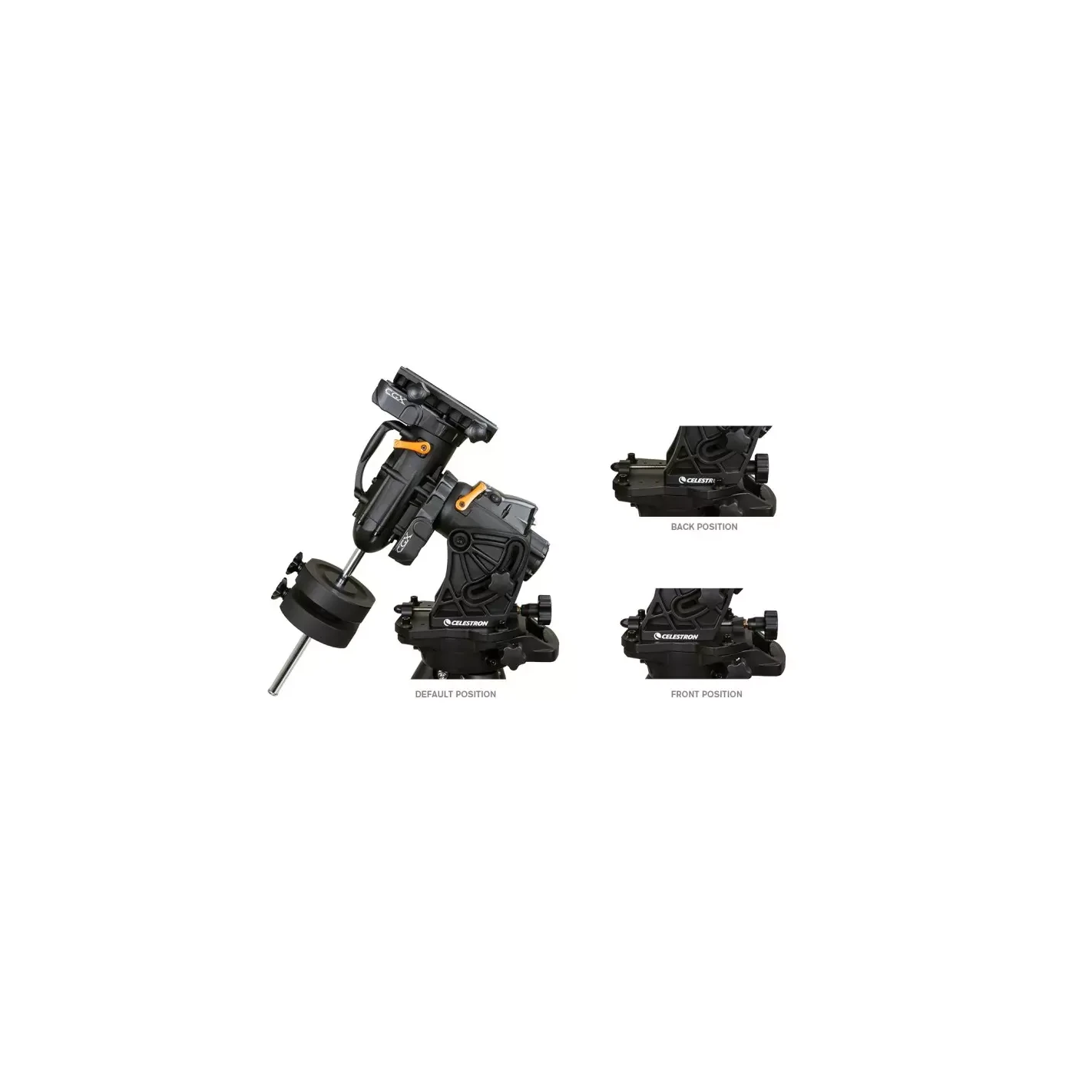 - Posición ajustable del cabezal de la montura para optimizar el centro de gravedad sobre el trípode y aprovechar al máximo el rango de latitud de 3º a 65º.