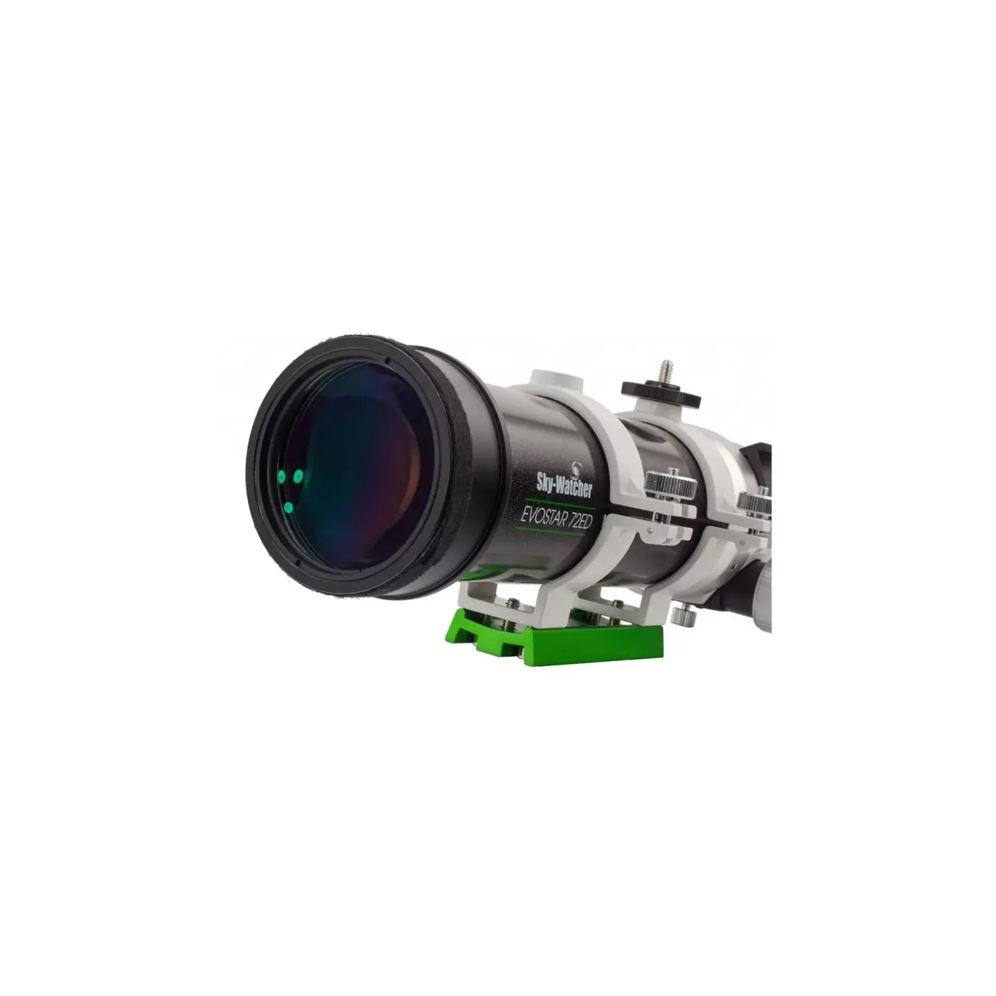 El telescopio refractor SkyWatcher EvoStar 72/420mm ED es un telescopio apocromáticos de 72mm de diámetro y 420 mm de distancia focal. Su objetivo se compone de un doblete apocromático (2 lentes) con tratamiento multicapa y con un cristal ED de baja dispersión totalmente pulido. De esta forma se tiene una lente que reduce al mínimo la difusión de la luz, y mejora la nitidez y contraste.