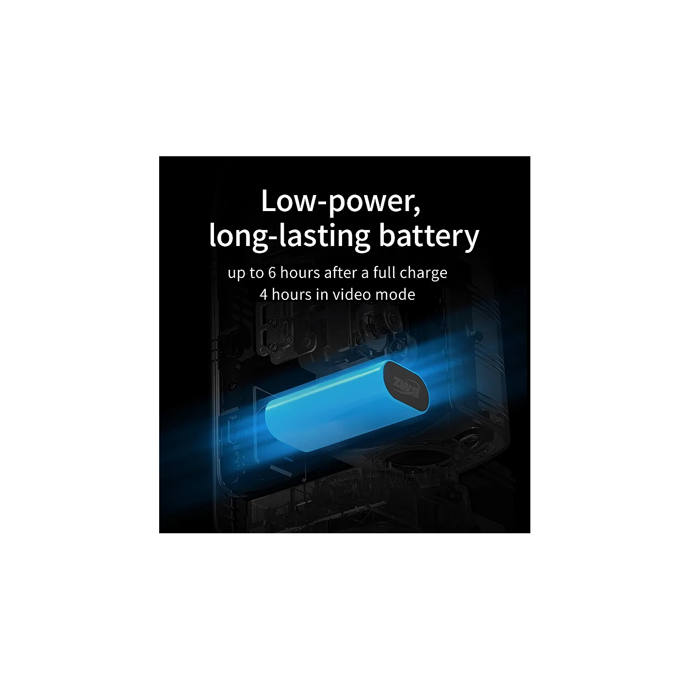 Bajo consumo. Su batería de 66000 mAh permite hasta 6 horas de utilización y 4 horas en modo Vídeo.