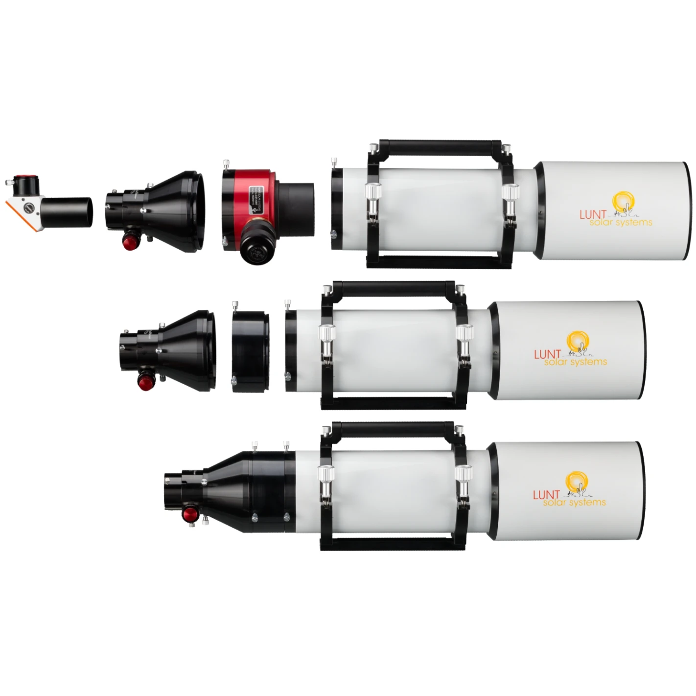Telescopio modular multiusos, apto tanto para la observación solar en longitud de onda H-alfa como para la observación nocturna del cielo. Fácil conversión entre diferentes aplicaciones con unos pocos pasos. Telescopio apocromático de 3 lentes con vidrio FPL-51, apertura de 130mm y distancia focal de 910mm – calidad de imagen sobresaliente tanto para la observación solar en H-alfa como para el cielo estrellado nocturno.