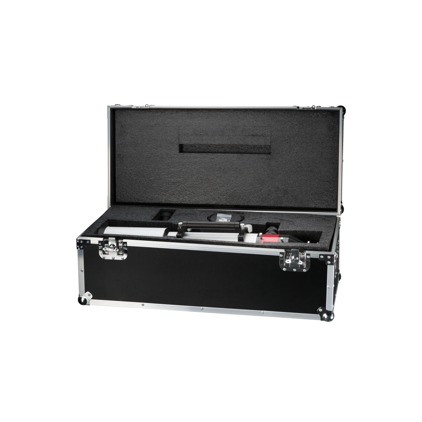 El LS130MT/B1200 es un telescopio completo para la observación solar en luz H-alfa, con una apertura libre de 130mm (sin obstrucción central) y una distancia focal de 910mm. La longitud de onda H-alfa es la forma más impresionante de observar el sol, revelando protuberancias en el borde del sol, filamentos y llamaradas en la superficie, y mucho más. Un filtro etalón interno alcanza un ancho de banda a media altura de <0,7 Angström con el innovador sistema de ajuste de presión de aire Pressure-Tuner. El ajuste se realiza mediante un ligero cambio de la presión del aire en una cámara de presión dentro del telescopio, alterando así el índice de refracción del aire para un ajuste preciso de la línea H-alfa. El Pressure-Tuner asegura una imagen uniforme sin obstrucción central y una protección duradera del etalón sin desgaste. Un conjunto de lentes de colimación instaladas en el telescopio asegura el mejor rendimiento.