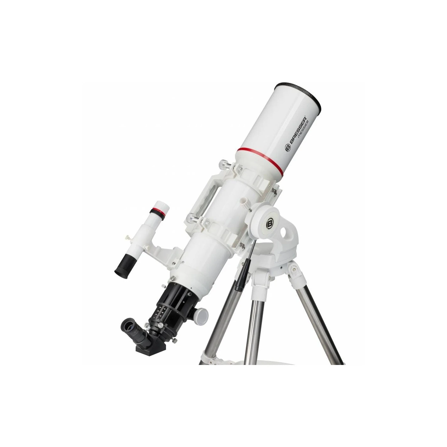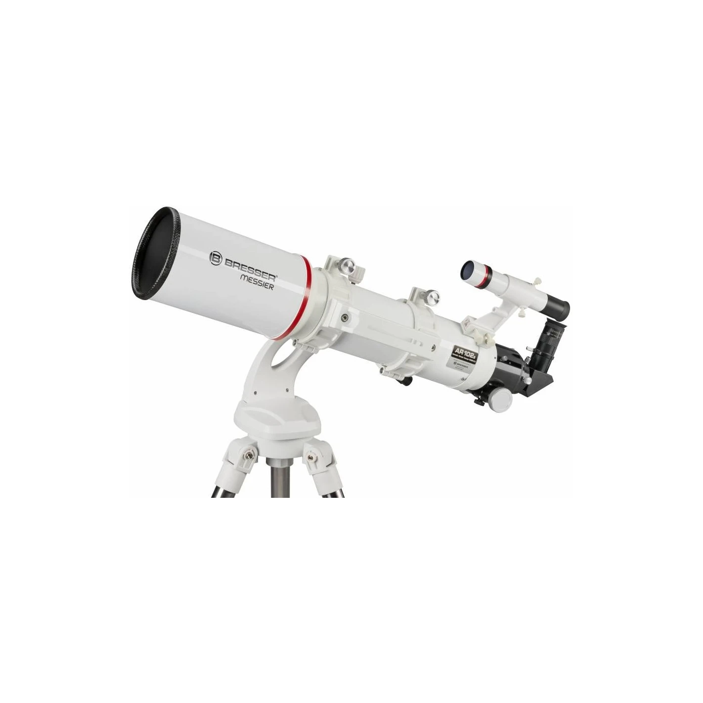 El MESSIER AR-102s recoge mucha más luz que el dispositivo utilizado por Galileo Galilei hace casi cuatrocientos años para hacer sus famosos descubrimientos. La tapa de protección contra el rocío instalada fija reduce la posible formación de rocío e impide la penetración de luz difusa por los laterales, con lo que aumenta más aún el contraste de la imagen. En la abrazadera del AR-102s hay un raíl de prisma GP para fijarlo a la montura.
