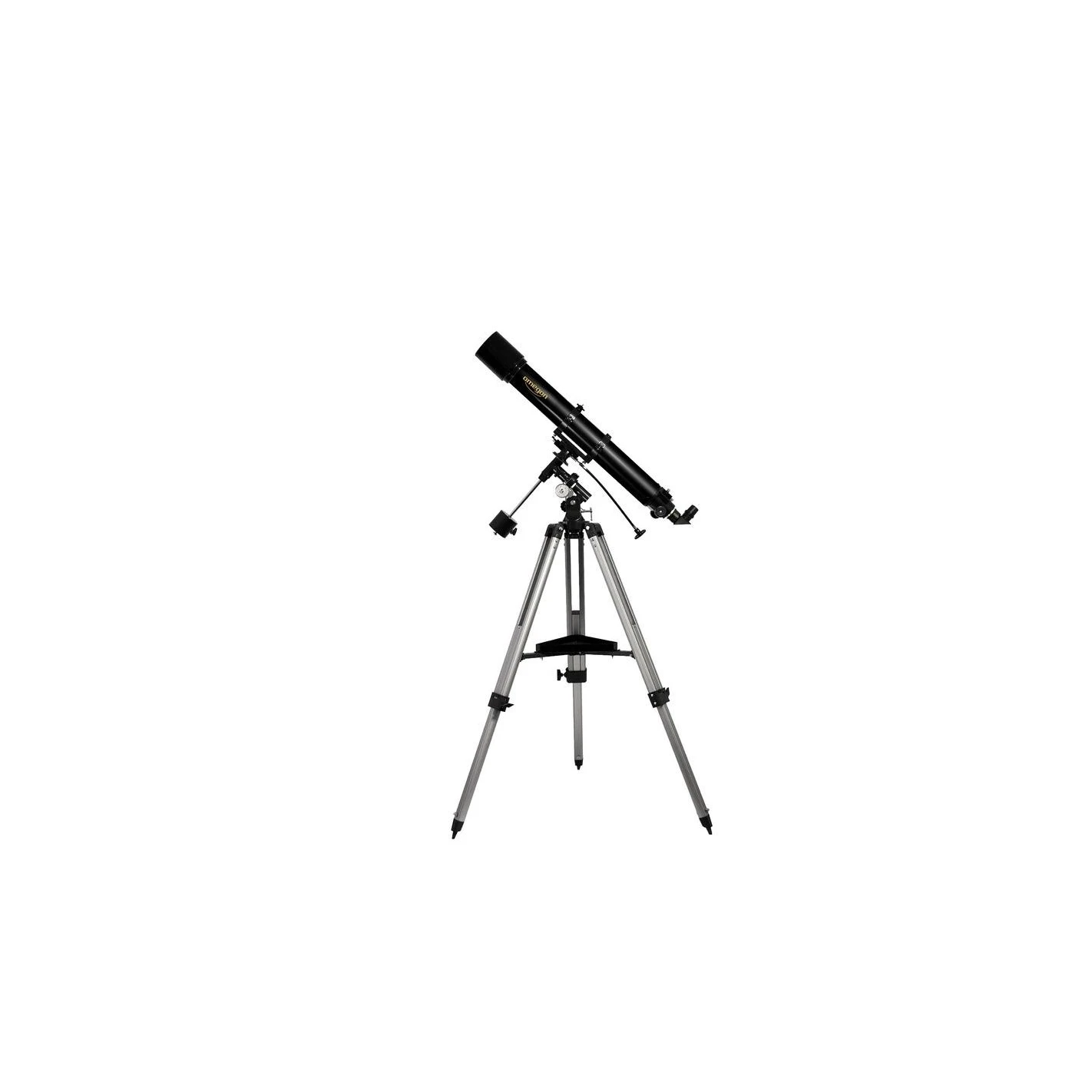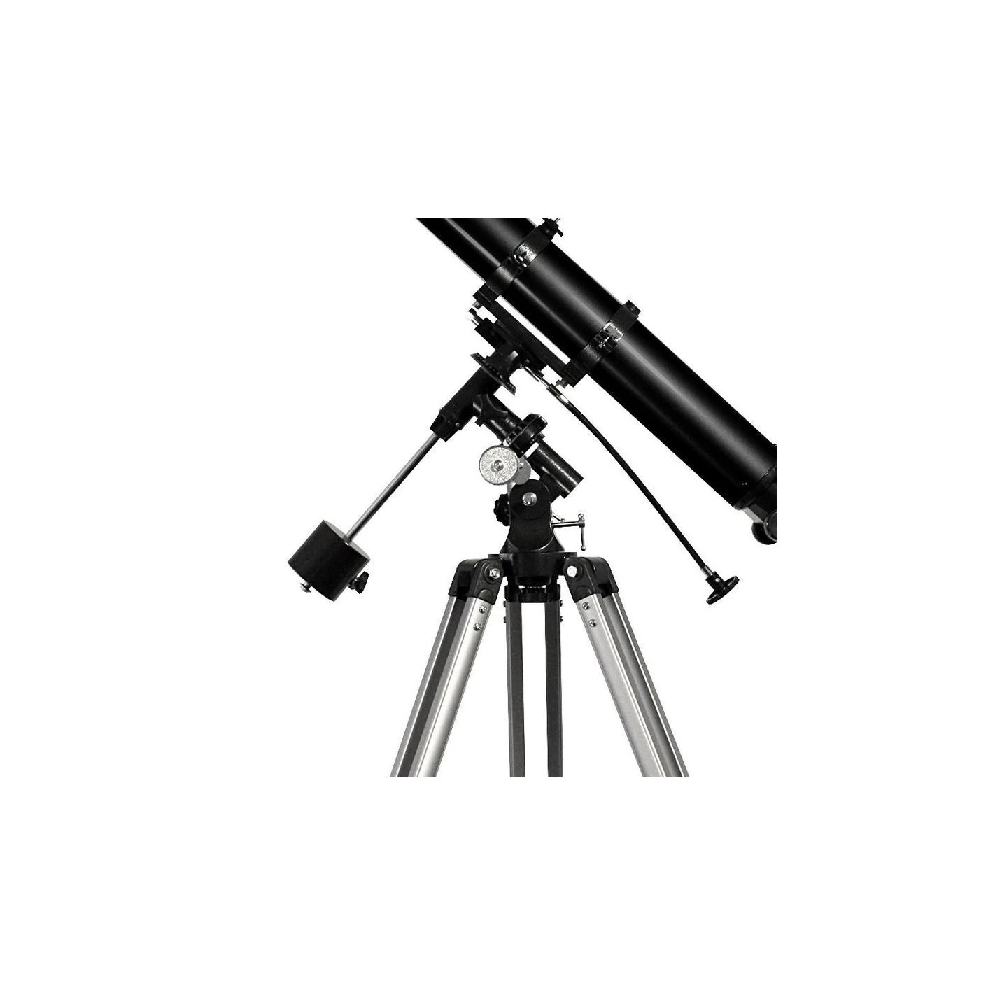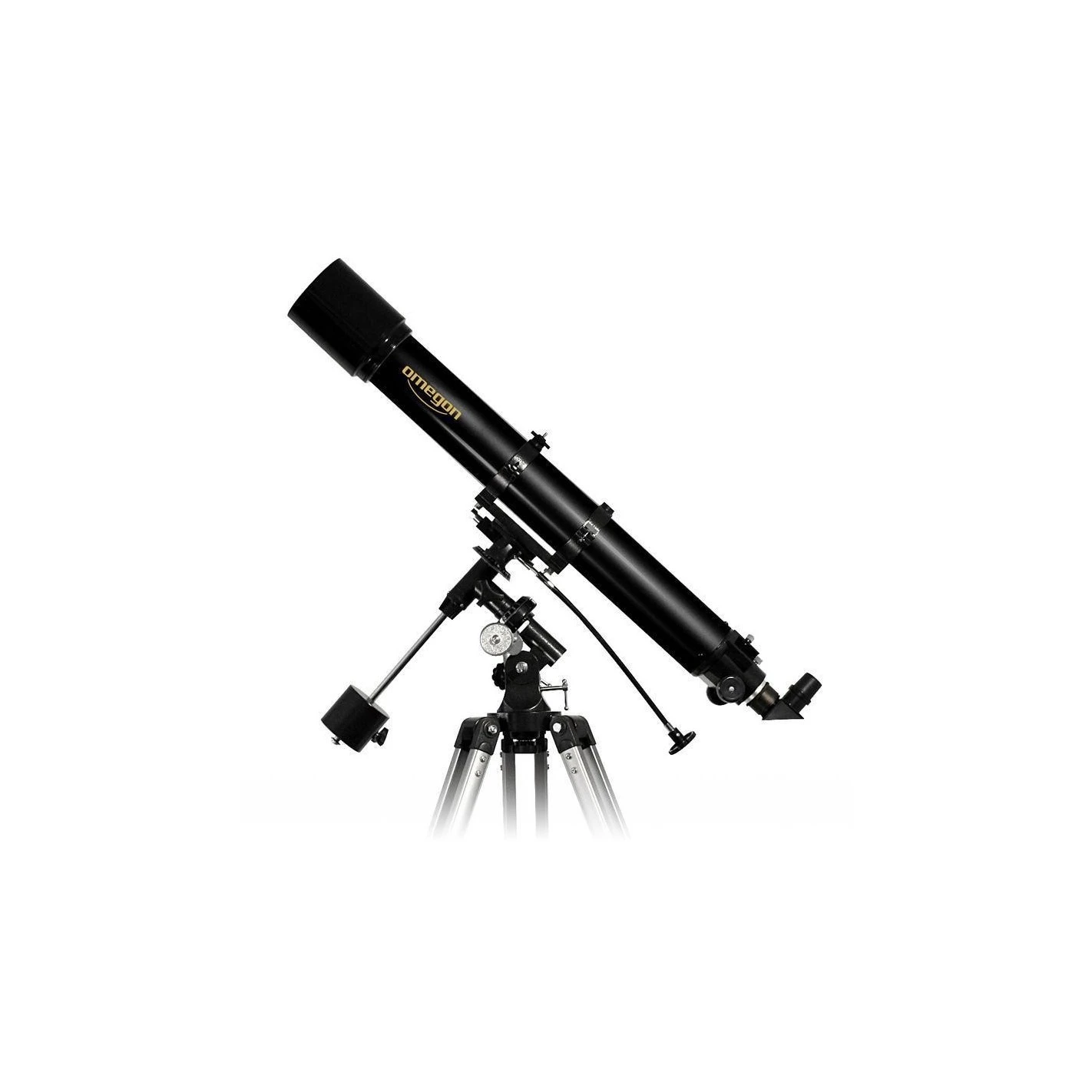 Este refractor está dotado, gracias a la combinación de dos lentes, de un objetivo acromático que corrige la mayoría de las aberraciones cromáticas. Suprime las molestas líneas cromáticas, y el telescopio ofrece imágenes claras y ricas en contraste. Con una apertura de objetivo de 90mm, el telescopio ofrece una variedad casi increíble de detalles, cuando usted observa los planetas como Júpiter, Marte o Saturno. Se trata de una experiencia impresionante ver por primera vez los anillos de Saturno o la Gran Mancha Roja de Júpiter. Pero también los objetos más brillantes de cielo profundo podrá descubrir con este telescopio. La Nebulosa del Anillo en la constelación de Lyra, la nebulosa de Orión y cúmulos estelares abiertos brillantes, por ejemplo, le regalarán horas interesantísimas de observación. Cabe destacar que este telescopio dispone de un potencial lumínico 165 veces más grande que el ojo humano (bajo 7mm EP).